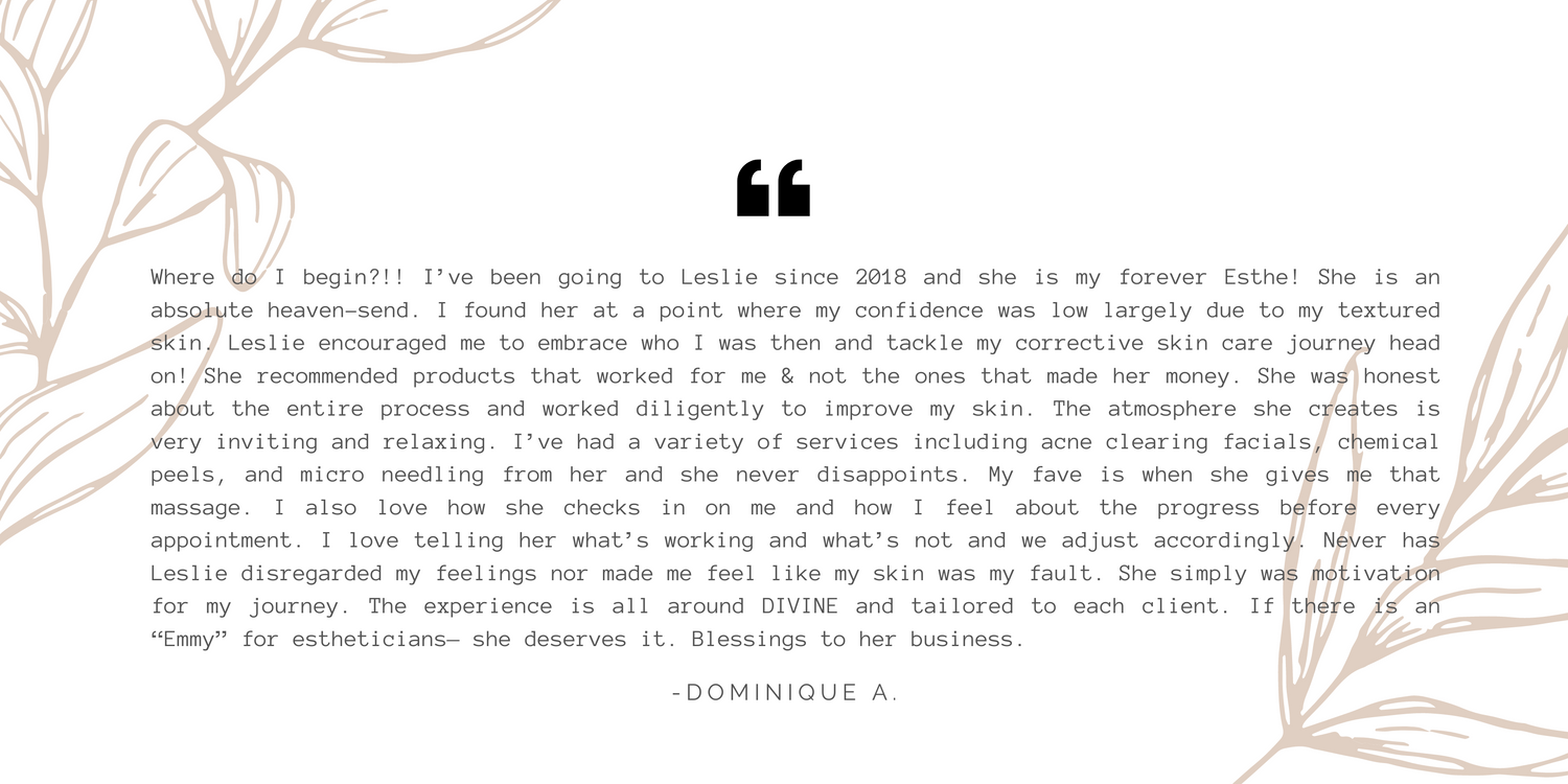 Hello! my name is Leslie Fernandez and I am the Founder and Licensed Esthetician here at Divine Skin Studio est. 2019. For the longest time skincare has always been a hidden passion of mine. Beginning my career in Corporate America, I knew there had to be something more that served me. a Greater purpose.